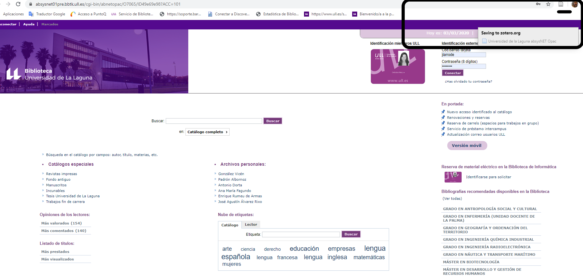El catálogo en línea de la Biblioteca (OPAC) incorpora desde una hoy una nueva funcionalidad: la posibilidad de exportar los resultados de las búsquedas a Zotero, aplicación gratuita para la gestión de referencias bibliográficas.