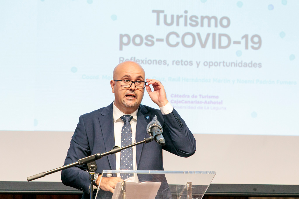 La Cátedra de Turismo CajaCanarias-Ashotel-Universidad de La Laguna ha editado en formato digital el libro “Turismo pos-COVID-19. Reflexiones, retos y oportunidades”, que ha sido coordinado por los profesores de la institución académica Moisés Simancas, Raúl Hernández y Noemí Padrón. La obra, que puede descargarse gratuitamente, cuenta con 64 artículos redactados por 110 autores, entre investigadores de 22 universidades españolas y latinoamericanas y profesionales de organizaciones públicas y privadas del sector.