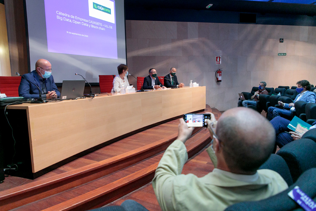El catedrático de Economía Financiera de la Universidad CEU San Pablo Ricardo J. Palomo Zurdo fue el ponente invitado al acto de renovación del convenio que sustenta la Cátedra Cajasiete-Universidad de La Laguna de Big Data, Open Data y Blockchain. En su ponencia analizó el actual contexto de cambio tecnológico constante y el discreto papel español en el panorama global de la innovación. En su opinión, para que éste mejore habría que convertir la política científica y tecnológica es el elemento motriz, apostar por la innovación sostenible e inclusiva, simplificar la burocracia y reforzar los centros tecnológicos con financiación estable: “No podemos hacer innovación ni atraer talento pagando con becas”.