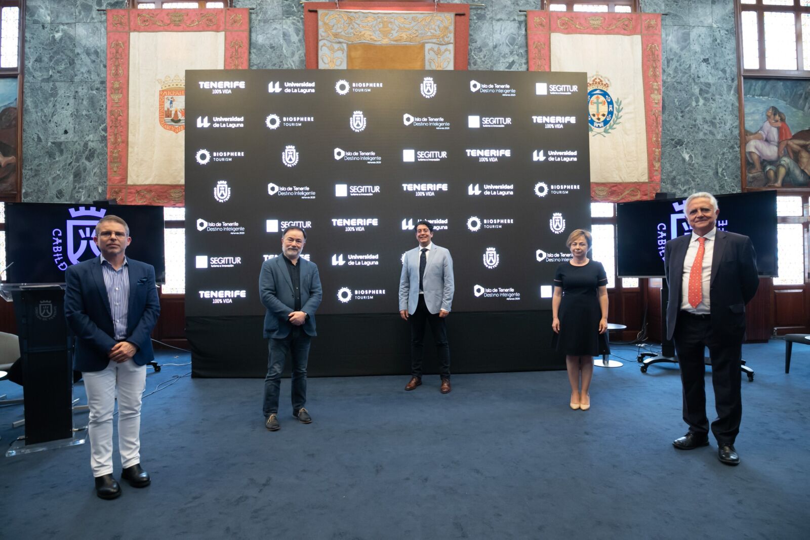La presentación, a la que acudieron miembros de la corporación, de Turismo de Tenerife y representantes de las administraciones involucradas, tuvo lugar en el salón noble con una pantalla LED de 5×3 metros donde se proyectó un avance de la estrategia promocional.