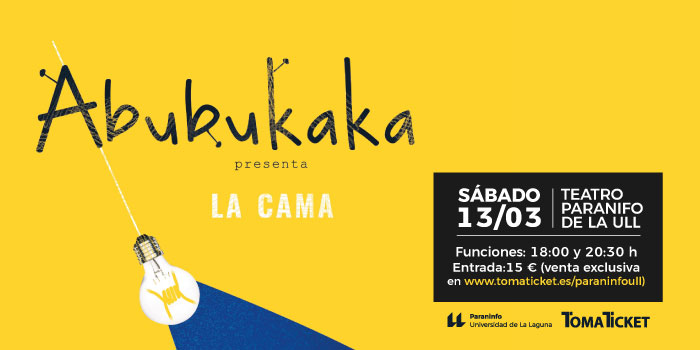 El grupo cómico canario Abubukaka actuará este sábado 13 de marzo en el Paraninfo de la Universidad de La Laguna. Los artistas ofrecerán dos sesiones de su espectáculo ‘La cama’, una a las 18:00 y otra a las 20:30 horas, cuyas entradas a 15 euros se pueden adquirir online en este enlace. Carlos Pedrós, Amanhuy Cala, Víctor Hubara y Diego Lupiáñez aseguran que este espectáculo supone un recorrido por “la más absurda intimidad del ser humano”. En palabras de Cala, se trata de una sátira absurda, casi musical, sobre la migración.