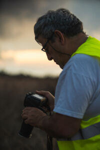 El equipamiento científico del que hace uso el catedrático de Petrología y Geoquímica es más bien escaso y sencillo. Lo podemos observar por las cercanías del volcán con todos los equipos de protección personal, una gran lanza que le ayuda a sortear el abrupto terreno y la mítica maza de geólogo. Y poco más. “Verás por aquí muchas instituciones con multitud de aparatos y tecnología, nosotros no, solo usamos la maza o el martillo para tomar muestras, o la pistola de fluorescencia de rayos X, que utilizan los compañeros de la Universidad de Orleans. Nosotros aportamos lo que a la universidad le sobra, conocimiento”.