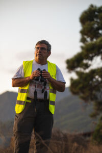“Hay ocasiones que la intensidad de las explosiones producidas por la expulsión de los gases volcánicos es muy potente y es capaz de llevar bombas a distancias bastante grandes. Donde estamos ahora (carretera de Tacande) cayeron bombas, alguna de las cuales tenía un tamaño de metro y medio. Afortunadamente, esa caída fue por la noche. Yo salí del lugar a las ocho de la noche y, al volver por la mañana, me encontré todo lleno de bombas. Hay momentos en los que hay que tener cuidado porque puede subir mucho la explosividad y el volcán te puede dar una sorpresa. Aunque lo normal es que no lleguen tan lejos”.