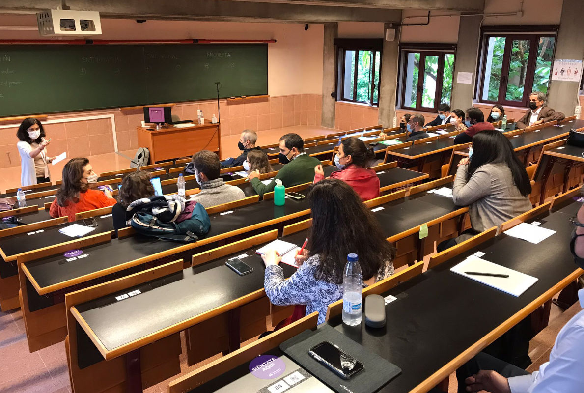 Después de la mesa inaugural, la profesora Leire San José repasó los retos de normalización e internacionalización de la contabilidad social y respondió las preguntas del público asistente. Las mesas redondas que siguieron abordaron los campos del turismo, con Raúl Hernández y Beatriz Guzmán moderados por el Javier Mendoza; las universidades, con Silvia Ayuso y José Luis Retolaza moderados por María Victoria Pérez; la Economía Social, con Antonio Gil y Ricardo Torres, gerentes respectivamente de la Cooperativa del Mercado Nuestra Señora de África y de la SAT FAST, moderados por el profesor Cándido Román, y las administraciones públicas, con Ramón Bernal exponiendo su trabajo sobre las licitaciones públicas.