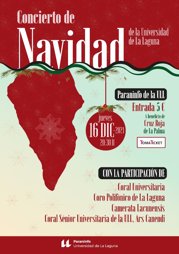El Paraninfo volverá a acoger, por décimo segundo año consecutivo, el ya tradicional Concierto de Navidad de la Universidad de La Laguna, que se celebra mañana, jueves 16 de diciembre, a las 20:30 horas y mantendrá su estructura inicial basada en la participación de los grupos corales vinculados a la institución académica: Coral Universitaria, Coro Polifónico de la Universidad de La Laguna, Camerata Lacunensis y la Coral Senior Universitaria Ars Canendi. En ediciones anteriores también se había contado con la valiosa participación de la Banda Sinfónica de la Universidad de La Laguna, pero debido a las restricciones en el aforo del escenario por la Covid-19, se ha pospuesto para mejor ocasión.