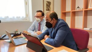 El presidente de Crue Universidades Españolas, José Carlos Gómez Villamandos, y el presidente de Crue-Sostenibilidad y rector de la Universidad de Burgos, Manuel Pérez Mateos.