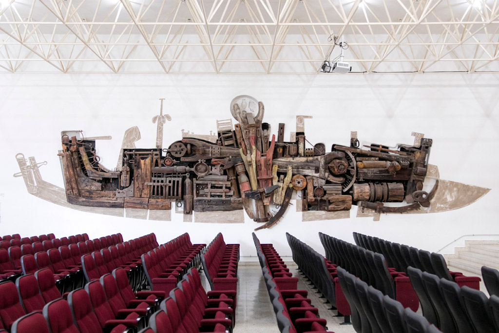 Pero ya quisieran todas las facultades albergar tesoros tan preciados como las imponentes esculturas de César Manrique que anidan en el salón de actos y en el bar restaurante, ahora cerrado. En esos tiempos en los que el artista lanzaroteño dejó su sello inconfundible a partir de material de desguace, el centro se llamaba Escuela Superior de la Marina Civil.