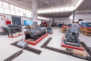 De esa escuela setentera queda aún mucho. A pesar de la renovación paulatina de las infraestructuras, los aires de estética de fábrica industrial siguen estando presentes en el taller, donde se hacen las prácticas de máquinas. De un lado está el gran salón de suelo de hormigón con tornos, motores, piezas de barcos y maquinaria pintada de azul, donde alumnos como Ricardo Sánchez Montero, de tercer curso de Tecnologías Marinas, despiezan las máquinas y las vuelven a montar para luego volverlas a desmontar.