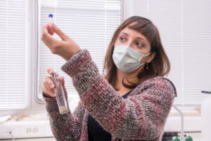 Los sedimentos se preparan con su numeración en el vial correspondiente una vez extraídos los lípidos, para comenzar el análisis mediante la cromatografía de gases en un espectrómetro de masas, dispositivo que permite analizar con gran precisión la composición de diferentes elementos químicos e isótopos atómicos. Estas moléculas invisibles extraídas del sedimento y analizadas en dos espectrómetros de masas aportan la información sobre el contenido de los lípidos y sobre sus isótopos.