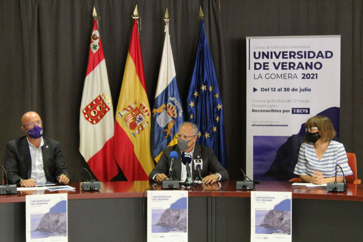 El Cabildo de La Gomera y la Universidad de La Laguna presentaron hoy, lunes 21 de junio, una nueva edición de la Universidad de Verano. Una iniciativa formativa que acerca la enseñanza superior a la isla en el marco de los cursos de extensión universitaria recuperados en 2016, a partir del acuerdo entre ambas instituciones, con el objetivo de reforzar la oferta formativa en La Gomera.