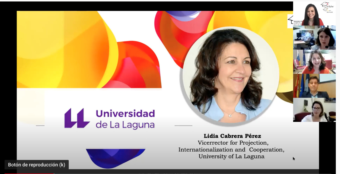 La Red de talentos IMFAHE (International Mentoring Foundation for the Advancement of Higher Education), ha celebrado recientemente su conferencia anual, en la que varios estudiantes de la Universidad de La Laguna presentaron los trabajos de investigación e innovación desarrollados a lo largo del curso con participantes de la señala red de todo el mundo. En la inauguración estuvo presente la vicerrectora de Proyección, Internacionalización y Cooperación, Lidia Cabrera, que puso de manifiesto la relevancia del trabajo de la Red IMFAHE para la estrategia de internacionalización de esta institución. La vicerrectora habló del talento, y de la importancia de mantener conexiones con estudiantes e investigadores de todo el mundo para aprender y construir conocimiento juntos. También señaló la necesidad de la adaptación a un mundo en continuo cambio, de ahí la importancia de la virtualización de la enseñanza.