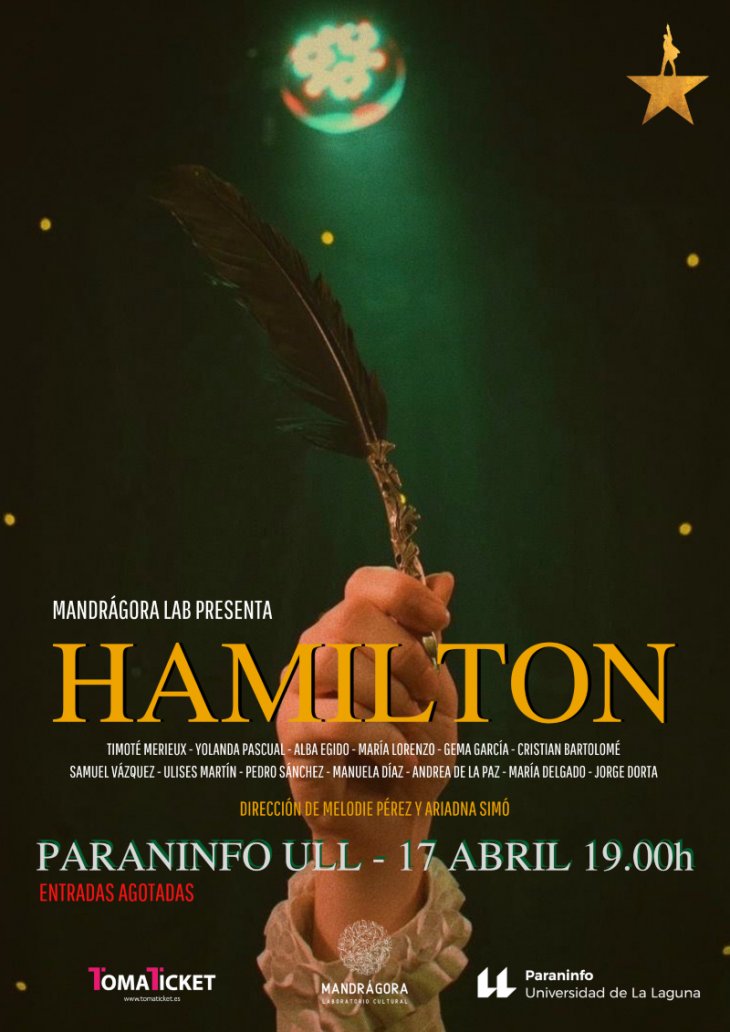 La compañía Mandrágora Lab presentará mañana, sábado 17 de abril a las 19:00, su versión del famoso musical de Lin Manuel Miranda “Hamilton: an American Musical”, un espectáculo que ha suscitado gran interés entre el público y ya ha agotado todas sus entradas.