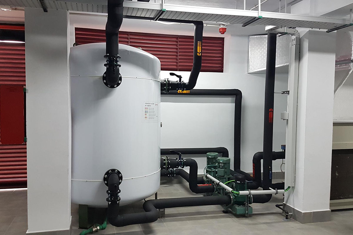 Con este proyecto, realizado por la empresa Veolia Servicios Canarias S.L., se han resuelto todos esos problemas y, además, se ha mejorado la eficiencia energética de la instalación. Por ejemplo, el sistema de recuperación de calor parcial utilizado a través de los desuperheaters permite producir agua caliente gratuita reutilizando el calor de los gases de descarga del compresor de la propia máquina enfriadora. De esta manera, el sistema de calentamiento de agua de la instalación, que se realiza mediante bomba de calor y depósito de inercia, dejará de funcionar el 90% del tiempo, lo que redunda en un ahorro energético y económico muy significativo.