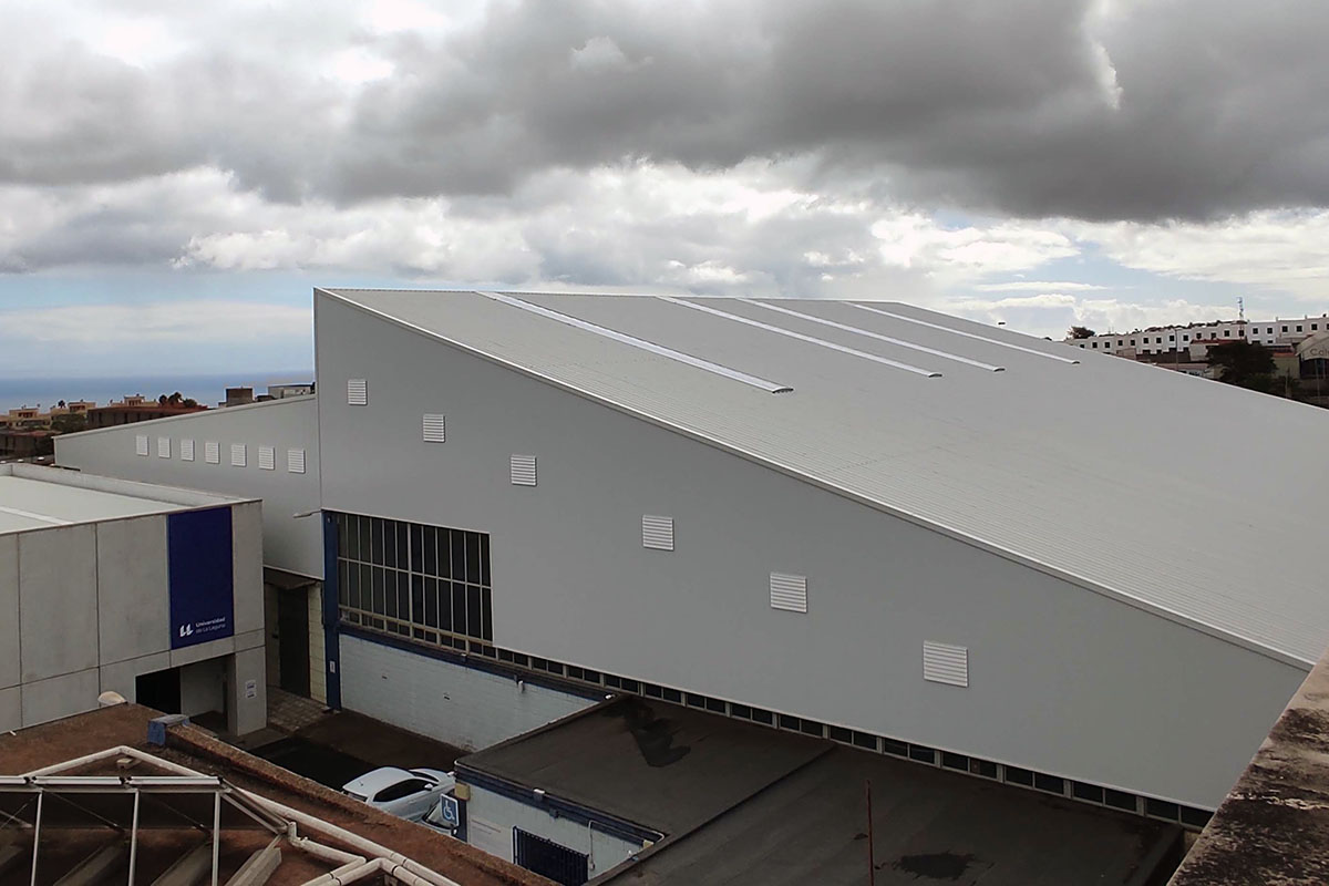 La Universidad de La Lagua ha recibido recientemente la obra de reforma de la cubierta de su pabellón polideportivo central, una infraestructura básica para el desarrollo de las actividades ofertadas por el Servicio de Deportes de la institución por la que pasan cada año centenares de usuarios. La obra ha tenido un presupuesto de unos 518.000 euros y ha sido ejecutada durante tres meses y siete días por la empresa Montajes Metálicos INGALUX S.L.