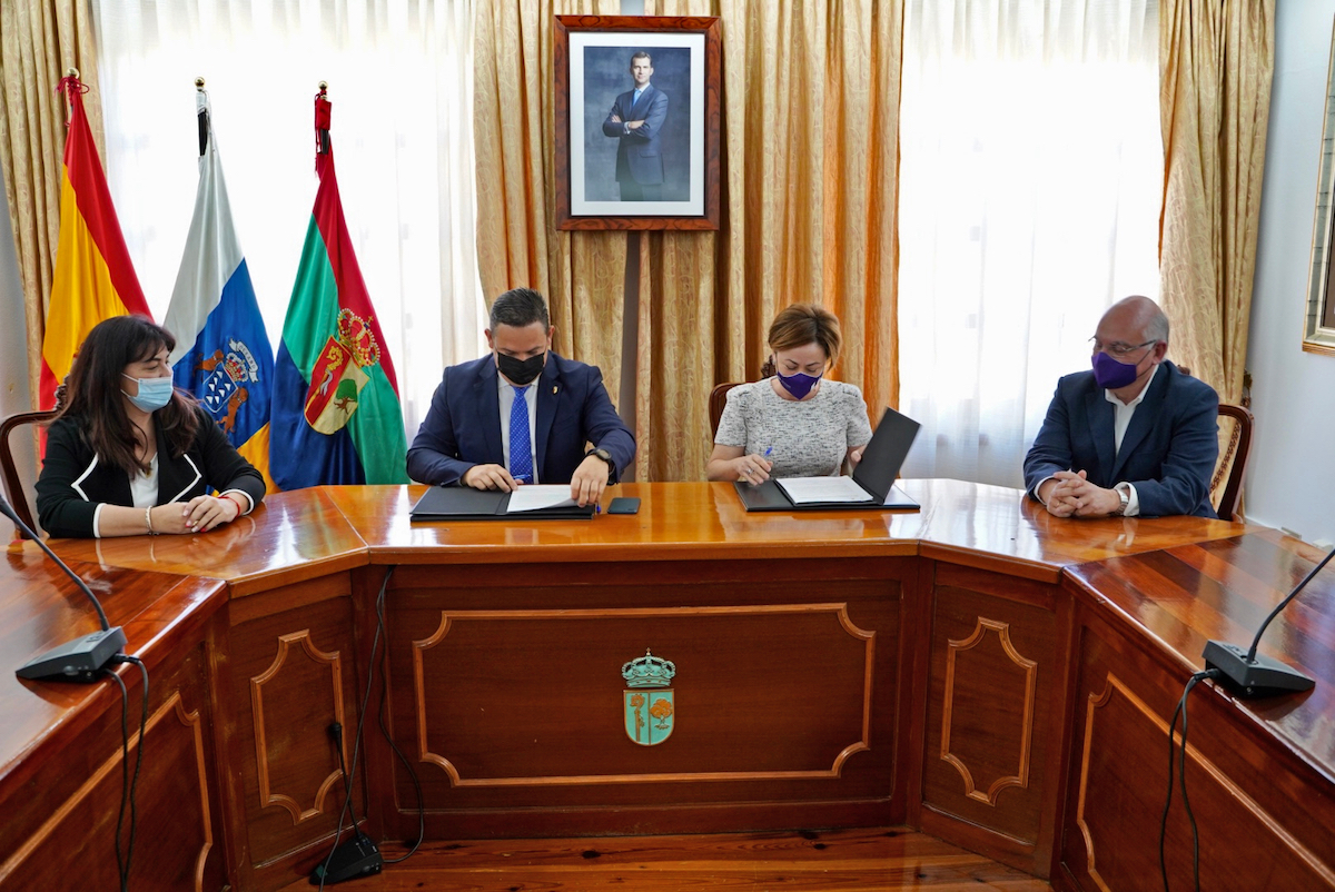 El Ayuntamiento de Arona y la Universidad de La Laguna, a través de su Fundación General, han suscrito hoy, 2 de marzo, un convenio para la realización de la tercera edición del “Programa de actividades para el fomento de la innovación empresarial en el municipio de Arona” (ARN INNOVA), que se desarrollará hasta el 31 de diciembre de 2023. En el acto, celebrado en la sala de plenos del Ayuntamiento de Arona, estuvieron presentes José Julián Mena, alcalde de Arona; Rosa María Aguilar, rectora de la Universidad de La Laguna, Raquel García, concejal del área de Promoción Económica; y Juan Diego Betancor, director-gerente de la Fundación General.