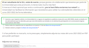 - Adjunta tus Notas del curso 2021/2022, (ver las especificaciones en el punto 5 de estas Bases)