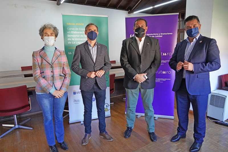 El Vicerrectorado de Cultura, Participación Social y Campus Ofra y La Palma de la Universidad de La Laguna acogió la presentación de la primera edición del Curso de Elaboración y Análisis Sensorial de Quesos de la institución académica. Este acto contó con la presencia del director de la Cátedra de Agroturismo y Enoturismo de Canarias Carlos Fernández, el director del Instituto Canario de Calidad Agroalimentaria José Basilio Pérez, el director General de Ganadería del Gobierno de Canarias Taishet Fuentes y la directora del Curso Zebina Hernández Hernández.