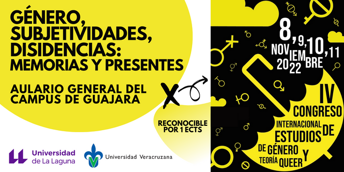 El Departamento de Filología Española de la Universidad de La Laguna y la Facultad de Letras Españolas de la Universidad Veracruzana de México han organizado conjuntamente el IV Congreso Internacional de Estudios de Género y Teoría Queer, que este año se celebrará, bajo el lema “Género, subjetividades, disidencias: memorias y presentes”, del 8 al 11 de noviembre en el Campus de Guajara. El horario será de tarde, para facilitar la asistencia telemática de congresistas americanos.