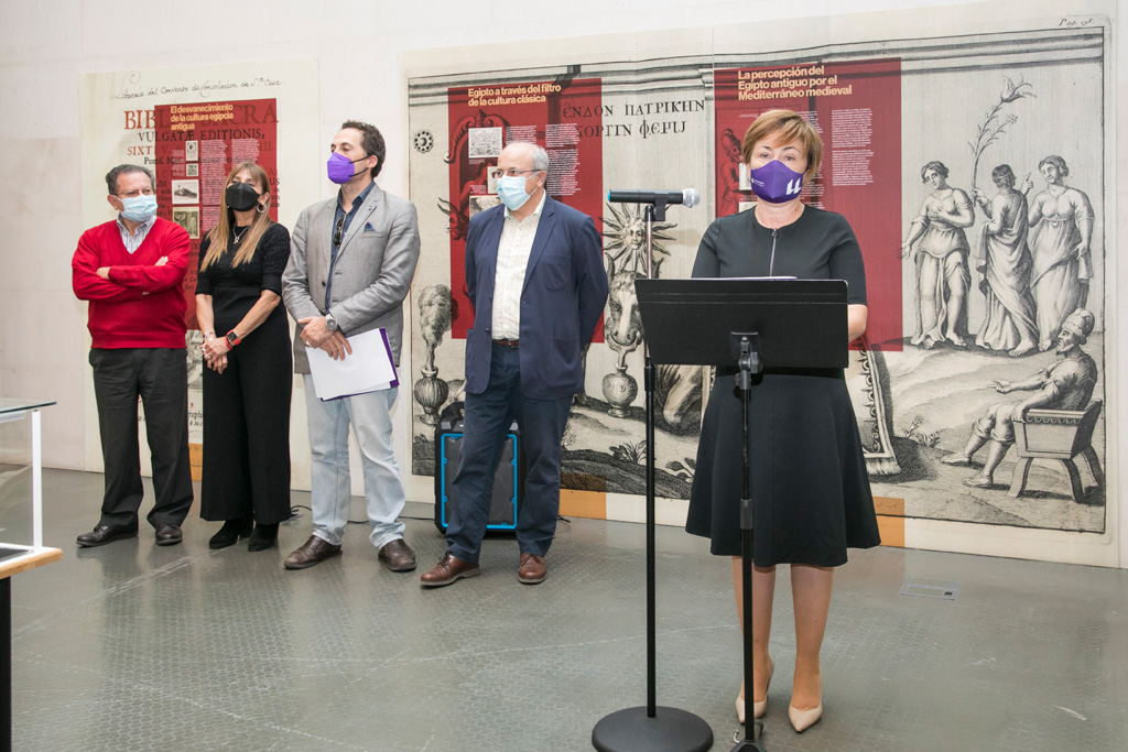 La rectora recordó en su intervención la fascinación que el antiguo Egipto, una civilización de 3.000 años de existencia, ha tenido sobre historiadores, artistas, poetas y público en general, gracias a los asombrosos restos monumentales que han pervivido hasta hoy. Sin embargo, muchas de sus características siguen siendo desconocidas, por lo que invitó a que esta muestra bibliográfica sirviera de acicate para conocer más sobre ella a través de los libros.