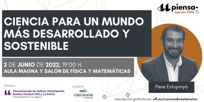 Este encuentro proseguirá mañana jueves 2 de junio, a partir de las 19 horas, y tendrá como invitado al escritor y presentador de televisión Pere Estupinyà. Este evento, promovido por el Vicerrectorado de Cultura y Participación Social junto a la Fundación CajaCanarias, busca alinear a la comunidad universitaria y a la sociedad en general con la Agenda 2030, así como con la recientemente publicada Agenda Canaria de Desarrollo Sostenible.