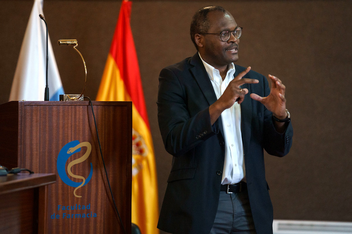 La segunda conferencia fue ‘Biomarcadores serológicos asociados a la COVID-19’, por Paul Alain Nguewa Kamsu, director del Instituto de Salud Tropical de la Universidad de Navarra. El experto destacó que la importancia de contar con biomarcadores de este virus permite identificar las fases de la enfermedad, mejorar el pronóstico y la clasificación de los pacientes. “Un correcto cribado de los enfermos nos permitiría no volver a sufrir colapso, porque se podrían separar de forma específica y destinar los recursos y los medios de forma más eficaz. Por ejemplo, hoy en día sabemos que los problemas respiratorios forman parte de la fase severa de la enfermedad”, detalló.