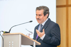 Recordó que el hispanista Andrés Bello fue quien tuvo ya esa percepción de la necesidad de buscar un campo común entre todas las personas hablantes del español, pero no supo acuñar un término preciso. Por ello, el ponente cita como hito que en una de sus obras s de 1909, Benito Pérez Galdós, por boca de uno de sus personajes, ya hable de “panhispanismo” como ese espacio teórico común.