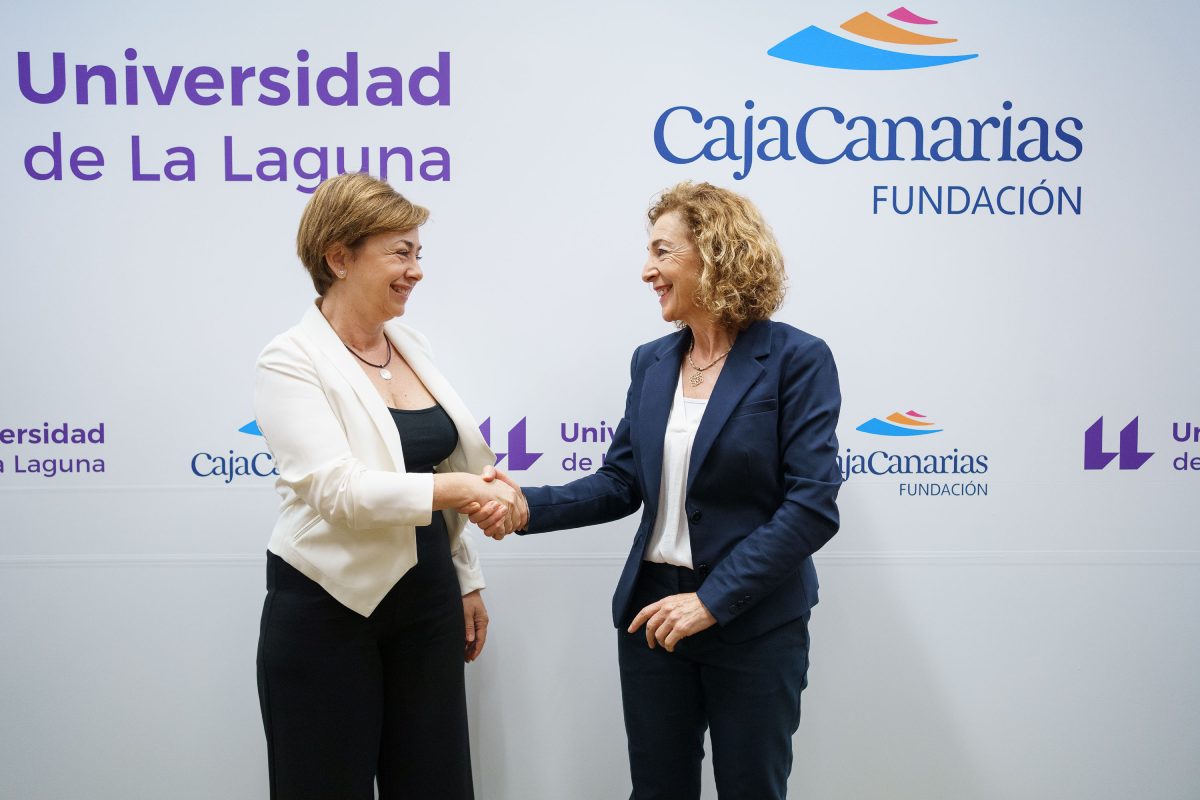 La Fundación CajaCanarias y la Universidad de La Laguna han suscrito hoy miércoles, 7 de diciembre, el convenio de colaboración entre ambas entidades para el desarrollo de importantes iniciativas conjuntas, a realizar a lo largo del curso académico 2022/2023. El documento fue refrendado en el Espacio Cultural CajaCanarias de Santa Cruz de Tenerife por parte de Rosa María Aguilar, rectora de la institución académica y Margarita Ramos, presidenta de la fundación.
