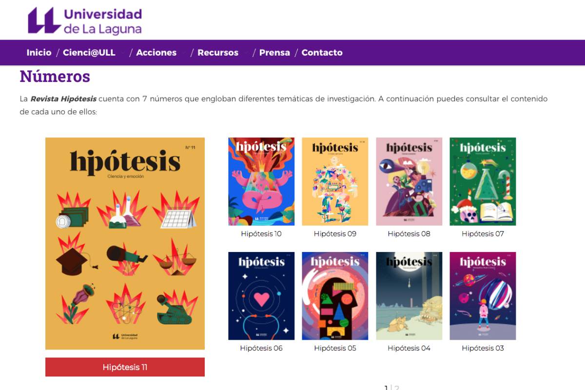La revista de divulgación científica de la Universidad de La Laguna, Hipótesis, estrena un nuevo visor web que permite disfrutar de todos sus contenidos desde cualquier ordenador. Hasta ahora la revista solo estaba disponible a través de su aplicación para móviles y tabletas. Esta herramienta tecnológica permitía explotar las ventajas tecnológicas de los dispositivos móviles y acercar la publicación al público más joven, nativo de este tipo de tecnologías. Desde hoy, además de poder seguir disfrutando de Hipótesis en su app gratuita, también se puede leer en la web a través de un simulador que imita la experiencia sensorial de hacerlo con un dispositivo móvil. De esta manera los artículos conservan las animaciones, vídeos, infografías o efectos especiales que solo se podían disfrutar en la versión móvil.