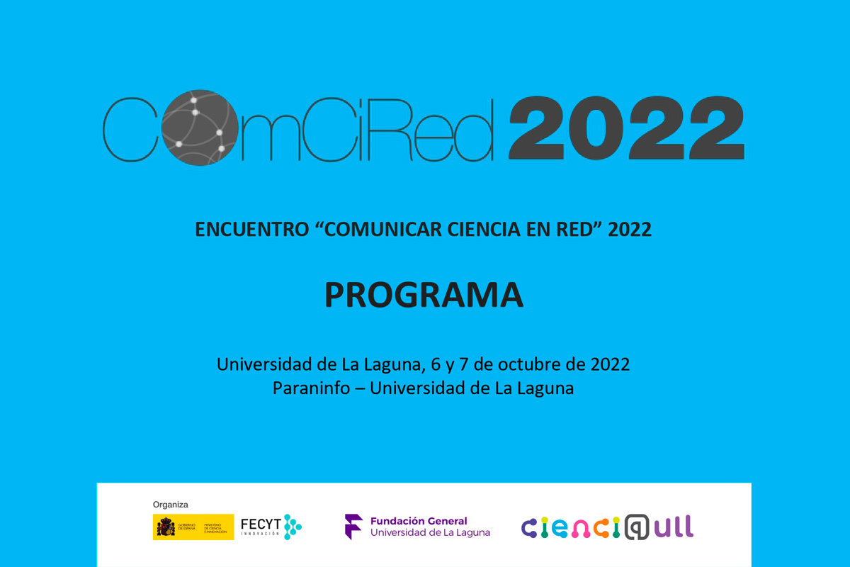 El 6 y 7 de octubre de 2022, se celebrará en la ciudad de San Cristóbal de La Laguna la duodécima edición del encuentro ComCiRed (Comunicar Ciencia en Red), organizado por la Fundación Española para la Ciencia y la Tecnología (FECYT) del MICINN con la colaboración de la Universidad de La Laguna.