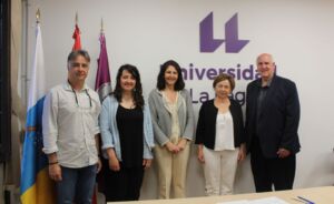 La rectora y vicerrectora en el centro de la imagen. A la izquierda el profesor de la ULL, acompañado de la coordinadora de proyectos de la universidad americana. A la derecha, el decano de la escuela de Wyoming.