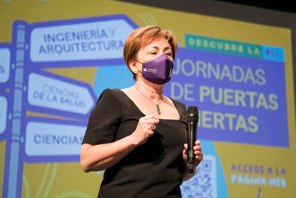 En su intervención, la rectora dio la bienvenida a los jóvenes asistentes y les invitó a elegir la Universidad de La Laguna como centro en el que desarrollar sus estudios superiores a partir del curso que viene. Explicó que el propósito de estas jornadas era disipar las dudas que pudieran quedar acerca de qué estudios elegir, si bien reconoció que, a estas alturas, muchas personas ya tendrían esa decisión bien adoptada.