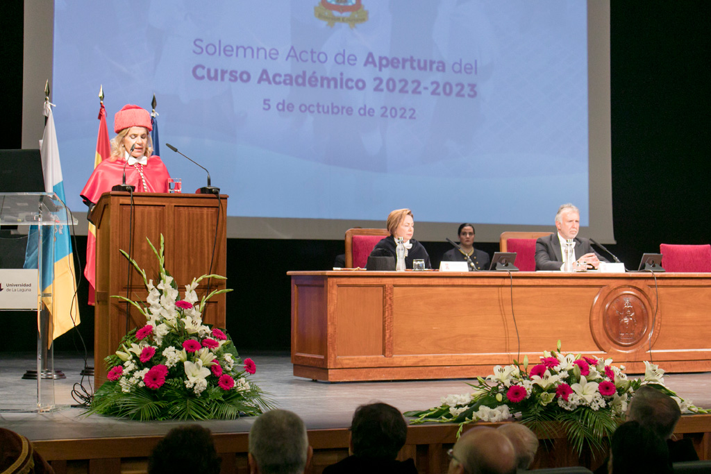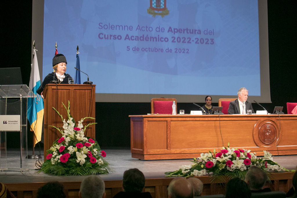 La Universidad de la Laguna ha celebrado hoy, miércoles 6 de octubre, el acto oficial de apertura de curso 2022/23, ceremonia que hubo de posponerse tras la reciente alerta meteorológica. El acto solemne que ha tenido lugar en el Paraninfo ha servido de escenario para que la rectora, Rosa Aguilar, mostrara su incertidumbre ante el presupuesto de 2023 para las universidades canarias, aduciendo la “situación insostenible” en la que se encuentran los centros académicos.