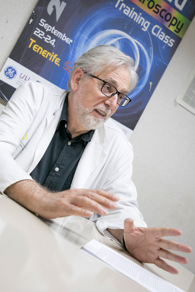 En sus dependencias fue donde este neurofisiólogo de formación, que se ha pasado la vida investigando sin pausa el sistema nervioso, dejó de lado los experimentos con ratones de laboratorio para dedicarse “más” a los seres humanos. Y lo hizo en el mismo momento en que su universidad decidió que necesitaba un centro de neuroimagen, “algo que salió adelante con la ayuda del Cabildo de Tenerife, que entendió la importancia del proyecto”.