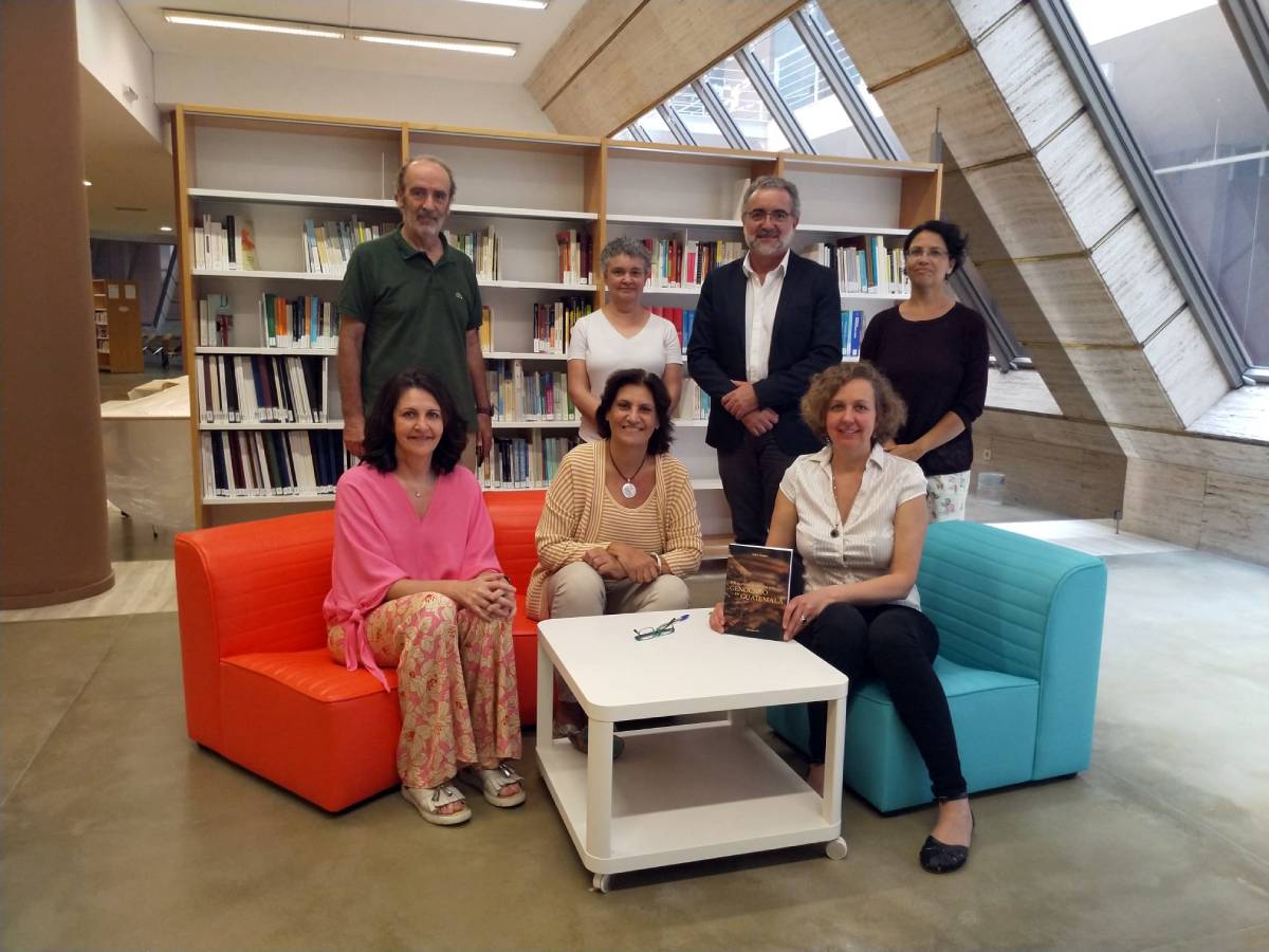 Foto cedida: Sofía Duyos, sentada a la derecha, posa junto al resto de participantes mostrando su libro sobre el genocidio de Guatemala.