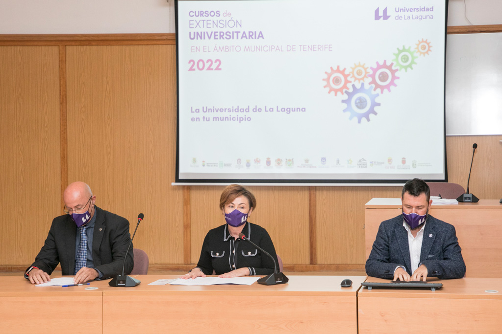 La Universidad de La Laguna mantiene desde hace años una programación de cursos de extensión universitaria para cuyo diseño y organización colabora con ayuntamientos de toda la isla de Tenerife. Hoy, martes 15 de marzo, ha sido presentada la oferta correspondiente a 2022, que es la más ambiciosa hasta la fecha dentro de esta iniciativa, pues abarca 40 cursos que serán impartidos a partir de abril hasta diciembre en 18 municipios diferentes.