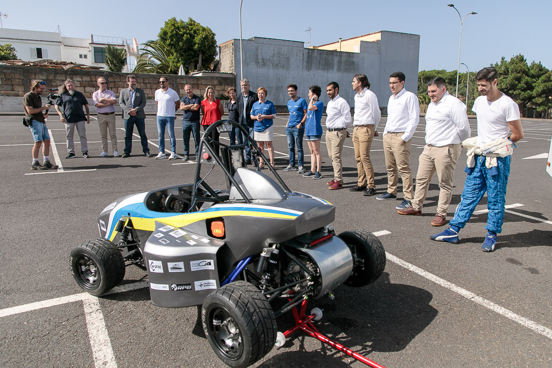 La Escuela Superior de Ingeniería y Tecnología de la Universidad de La Laguna ha acogido hoy, miércoles 24 de agosto, la presentación del vehículo que participará la próxima semana en la competición internacional Fórmula Student, que se celebrará en Barcelona. Tras más de cuatro años de arduo trabajo, el equipo de estudiantes de la institución académica ha podido echar a rodar este monoplaza 100% eléctrico que se ha elaborado desde cero en la universidad.