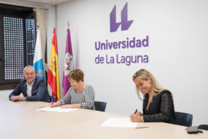 Rosa Aguilar, rectora de la ULL, junto a Susana García Espinel, directora de Santander Universidades y Universia España.