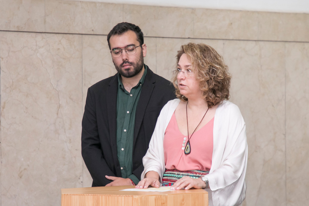Seguidamente, María Dolores Morera, directora de Secretariado de Prácticas Externas y Alojamiento, y Sergio Siverio, profesor de la Facultad de Derecho y subdirector del aula cultural organizadora, leyeron el manifiesto del Orgullo Universitario, elaborado por la Red de Universidades por la Diversidad. En el manifiesto se ratificó el compromiso de la universidad con los derechos del colectivo LGBTIQ+ y el rechazo a cualquier forma de discriminación.