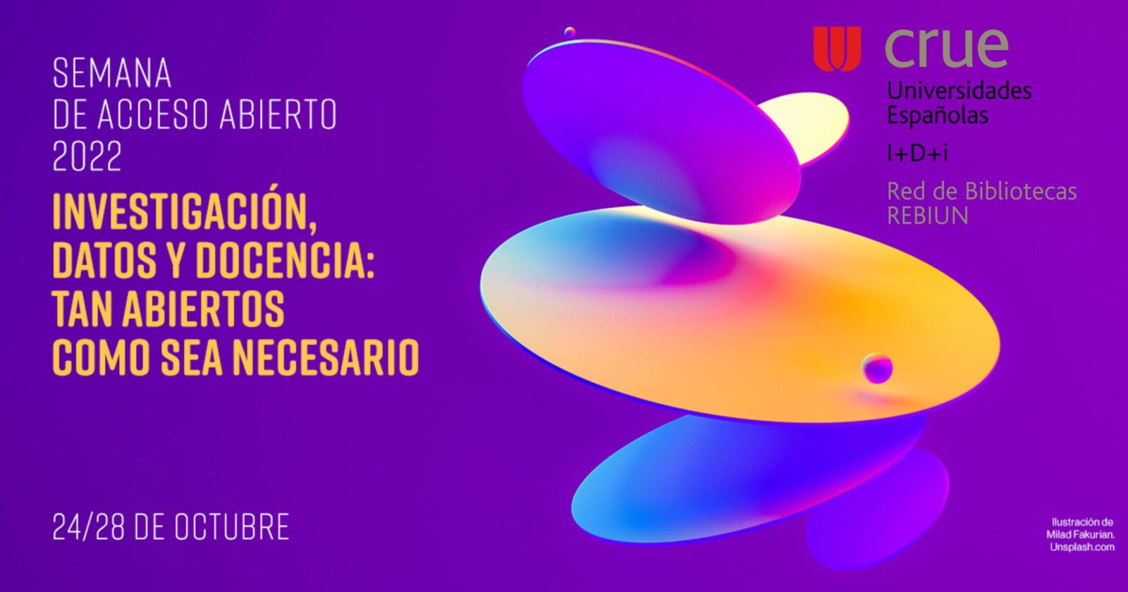 La próxima semana, del 24 al 28 de octubre, se celebra la Semana del acceso abierto 2022. Por este motivo REBIUN organiza tres sesiones-webinars dirigidas principalmente al personal investigador, bajo el título «Investigación, datos y docencia: tan abiertos como sea necesario».