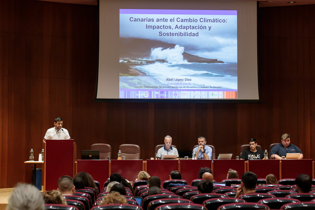 En la sesión también intervino el experto en cambio climático Abel López, profesor del Departamento de Geografía e Historia, quien explicó a los miembros del Claustro en qué consiste este fenómeno y cómo va a afectar a Canarias.