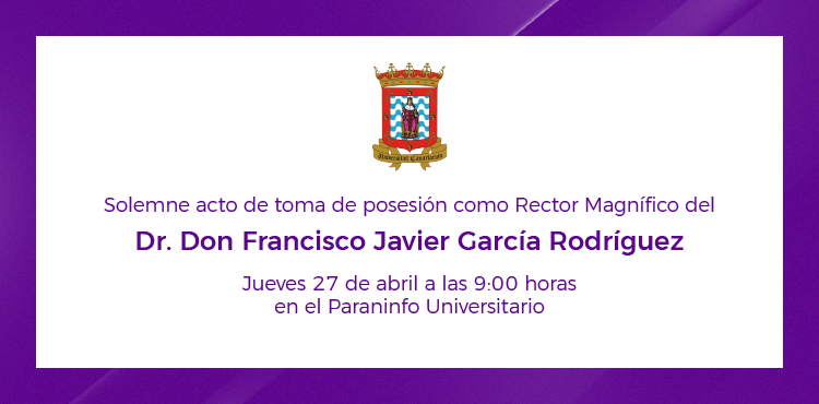 La Universidad de La Laguna celebrará el solemne acto de toma de posesión de Francisco Javier García Rodríguez como rector de la Universidad de La Laguna el próximo jueves, 27 de abril a las 9:00 horas en el Paraninfo de la institución académica.