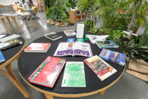 “Sólo falta el canto de los pájaros y una cascada”, afirmó con sorpresa Gonzalo Rey Pinzón, uno de los subdirectores del Servicio de Biblioteca de la Universidad de La Laguna, ante el insólito aspecto que mostraba hoy, martes 25 de abril, el vestíbulo de la Biblioteca General y de Humanidades del Campus de Guajara: una amplia muestra de flores y plantas tanto canarias como exóticas en el espacio que, habitualmente, ocupan estanterías y pupitres. El motivo no era otro que la exposición “De libros y otras hierbas”, organizada con motivo del Día del Libro y que celebra la botánica a través de un muestrario no solo de volúmenes relevantes sobre esta ciencia, sino de objetos relacionados con ella y los especímenes vivos ya mencionados.