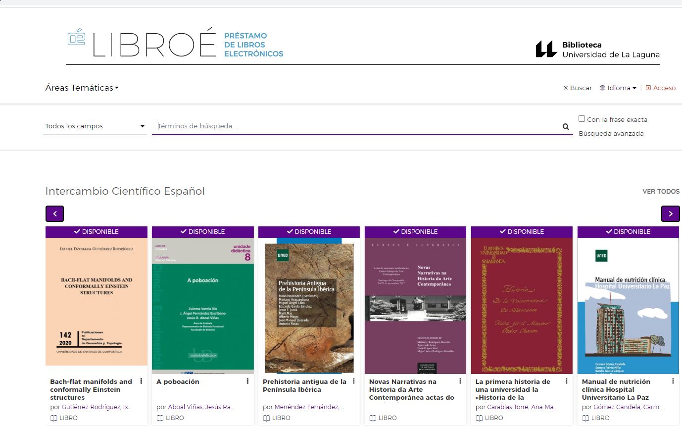 La Biblioteca de la Universidad de La Laguna ha incluido la plataforma Libroé de préstamo de libros electrónicos en la búsqueda integrada de PuntoQ aunque, como otras bases de datos, también puede buscarse solo en ella abriendo el desplegable de la caja principal de búsqueda.