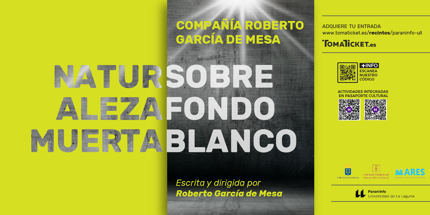El Paraninfo de la Universidad de La Laguna acoge mañana sábado 15 de abril, de 20:30 a 22:00 horas, el proyecto de poesía escénica ‘Naturaleza muerta sobre fondo blanco’, escrita y dirigida por Roberto García de Mesa, que trata de indagar en dos conceptos que están de moda en la sociedad contemporánea: la perturbación y el desconcierto.