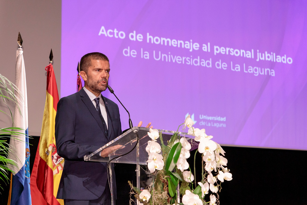 El Paraninfo de la Universidad de La Laguna fue el espacio donde se desarrolló ayer 21 de junio un entrañable homenaje al personal jubilado de la institución académica. Reconocimiento y gratitud fueron las dos palabras elegidas por el rector, Francisco García, hacia la treintena de homenajeados, tanto profesorado como personal de administración y servicios. “Esperamos que el futuro de esta institución lo podamos seguir escribiendo juntos”, afirmó el rector, “que puedan acudir a nuestras ceremonias cotidianas, que disfruten de nuestra actividad cultural y que también hagan uso de las fórmulas de compatibilidad docente e investigadora para seguir contando con su talento”, agregó, fórmulas que espera potenciar y hacer más explícitas para que esta vinculación no se pierda. “Queremos seguir contando con su experiencia”, continuó el rector, “para seguir generando equidad en nuestra tierra”.