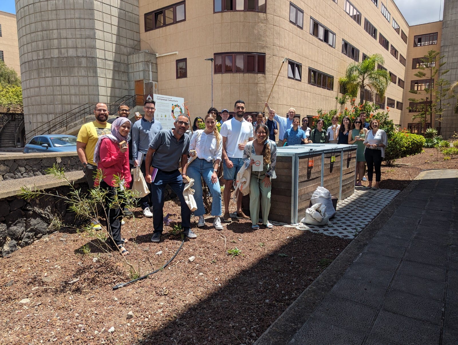 Por último, Carlos Jiménez tras realizar una explicación sobre la importancia del compostaje comunitario, presentó al grupo de manera práctica la compostadora localizada en la Facultad de Economía, Empresa y Turismo, que se enmarca en la iniciativa de la ULL denominada Campustaje, promovida por el mencionado profesor