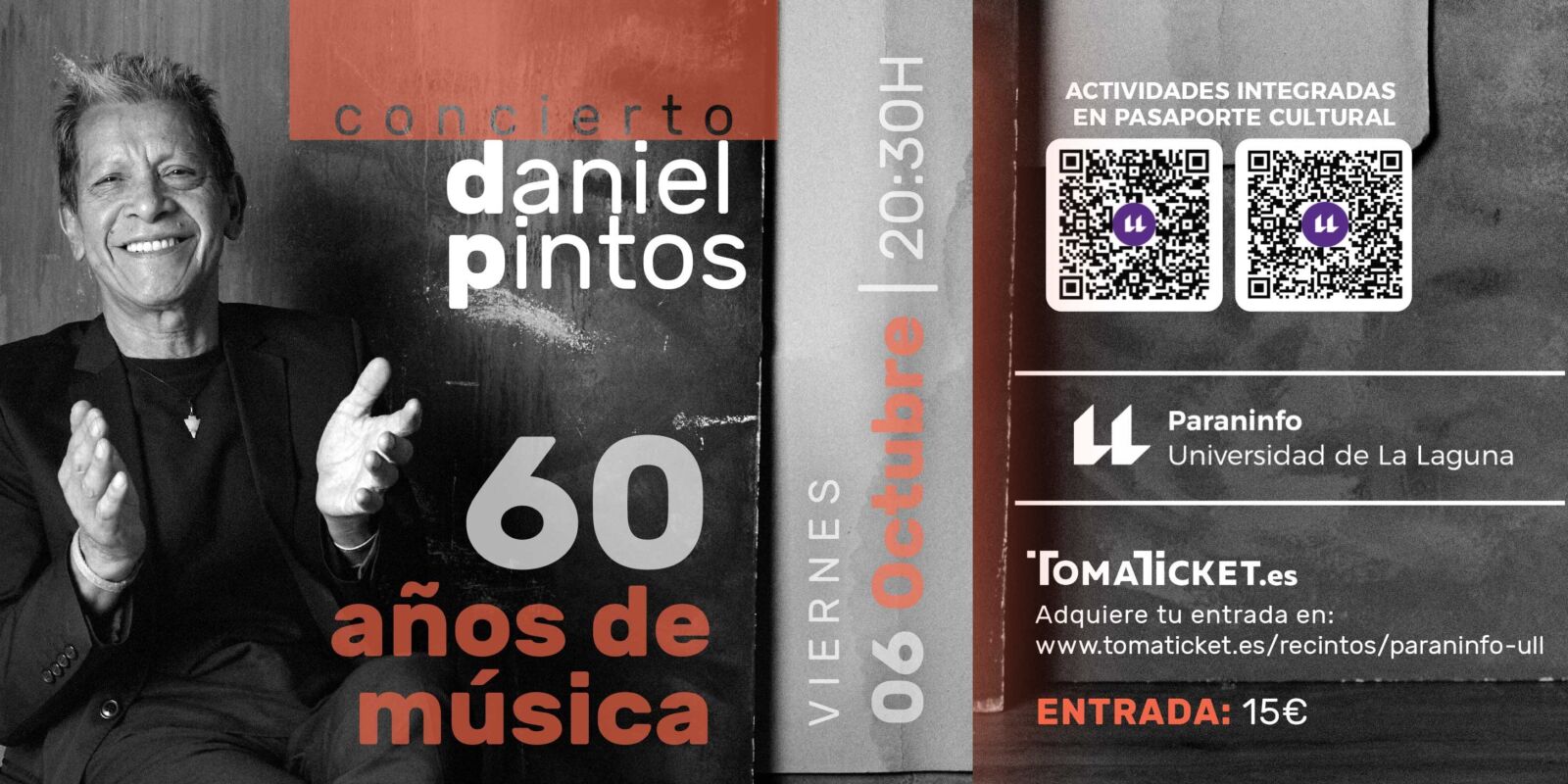 El concierto 60 años de Música del cantante argentino Daniel Pintos arranca hoy a las 20.30 horas en las tablas de la sala escénica universitaria. El público podrá disfrutar de un amplio recorrido por toda la música del mundo argentino y de aquellas canciones que han marcado la larga trayectoria del artista. Está previsto que asistan alrededor de unas 50 personas invitadas para subir al escenario y cantar con Pintos.