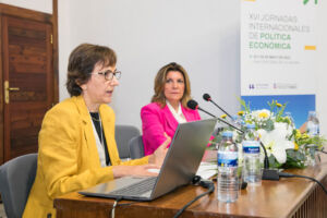 Finalmente, la coordinadora del comité organizador de las jornadas, la profesora del Departamento de Economía Aplicada y Métodos Cuantitativos Rocío Peña repasó el programa de este evento académico diseñado como foro para reflexionar sobre decisiones de política económica en momentos de incertidumbre. Destacó las dos ponencias principales, las dos mesas redondas y las sesiones paralelas que analizan las diversas políticas instrumentales y sectoriales, así como los nuevos objetivos que surgen a medida que el variable contexto internacional va cambiando.
