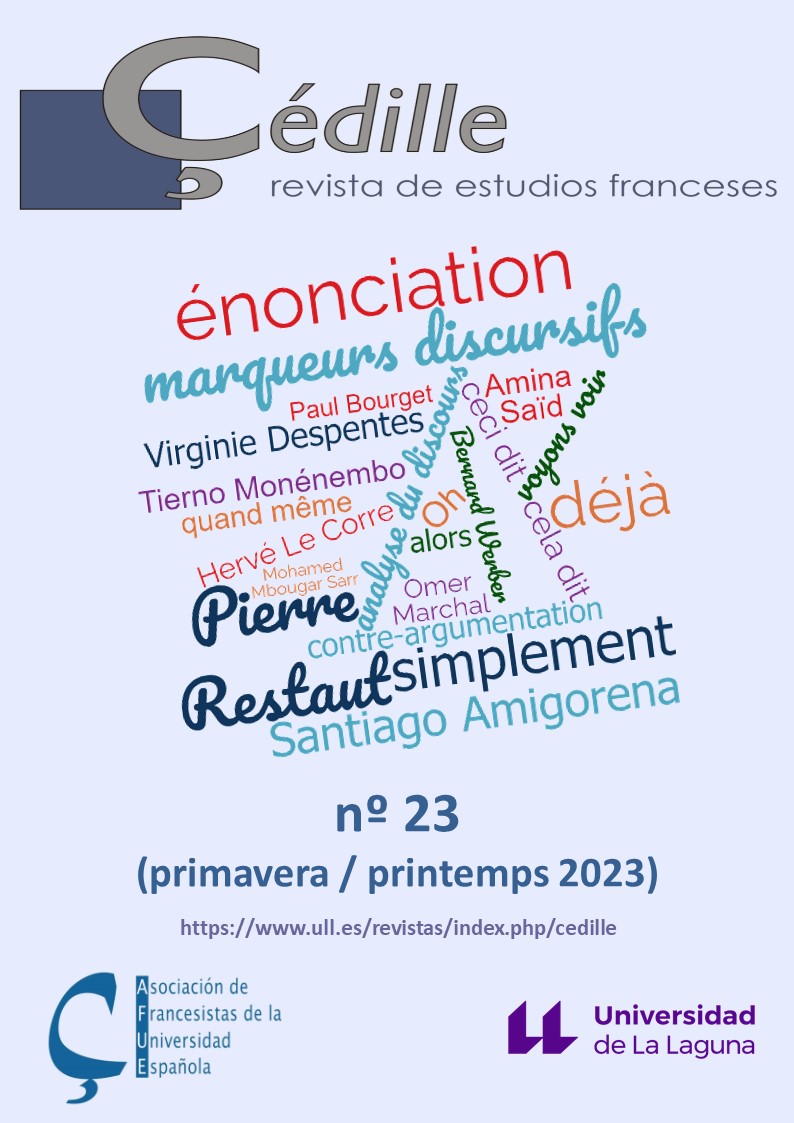 El vigésimo tercer número de la revista de estudios franceses Çédille, acaba de ser publicada en su ya habitual formato electrónico. La cabecera está editada por la Asociación de Francesistas de la Universidad Española, con la colaboración de la Universidad de La Laguna, y la dirige el profesor del Departamento de Filología Clásica, Francesa, Árabe y Románica de la institución tinerfeña José Oliver Frade.