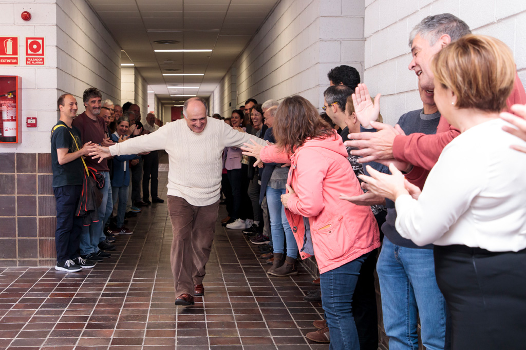 Sus compañeros de la Sección de Física hicieron un pasillo de aplausos a Teodoro Roca cuando se dirigía a descubrir la placa del aula que a partir de hoy lleva su nombre.